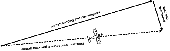 When two forces are exerted on each other, we have a “triangulation”—one vector representing one force (the wind), a second vector representing the second force (the aircraft), and a third vector representing the resultant effect of the two forces (called the resultant). It is the resultant that can predict whether or not the aircraft will land at the Edmonton International Airport or end up flying somewhere in Saskatchewan.